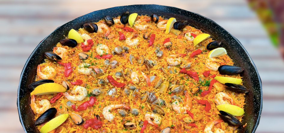 vegetables, and Bilbao, a handcrafted chorizo from Spain. - Seafood Paella: Bomba Rice, shrimp, squid, mussels, clams, scallops infused with